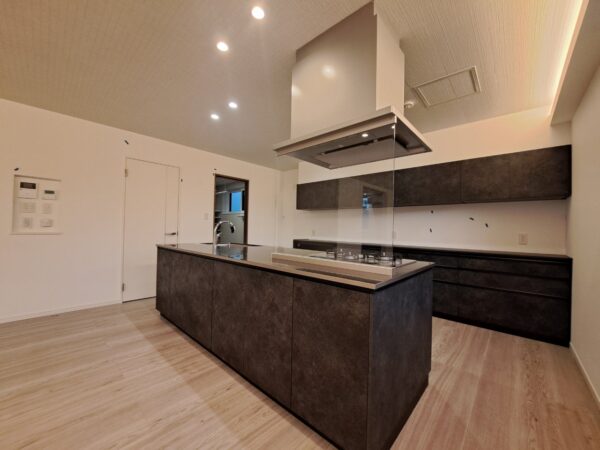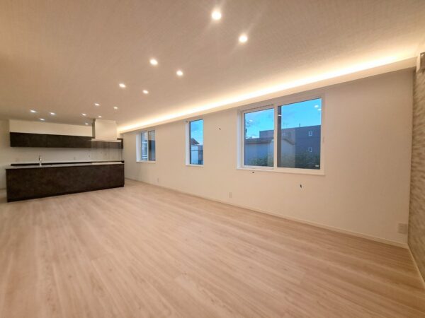 アイランドキッチンを採用し、間接照明を設置したLDKは約25帖!